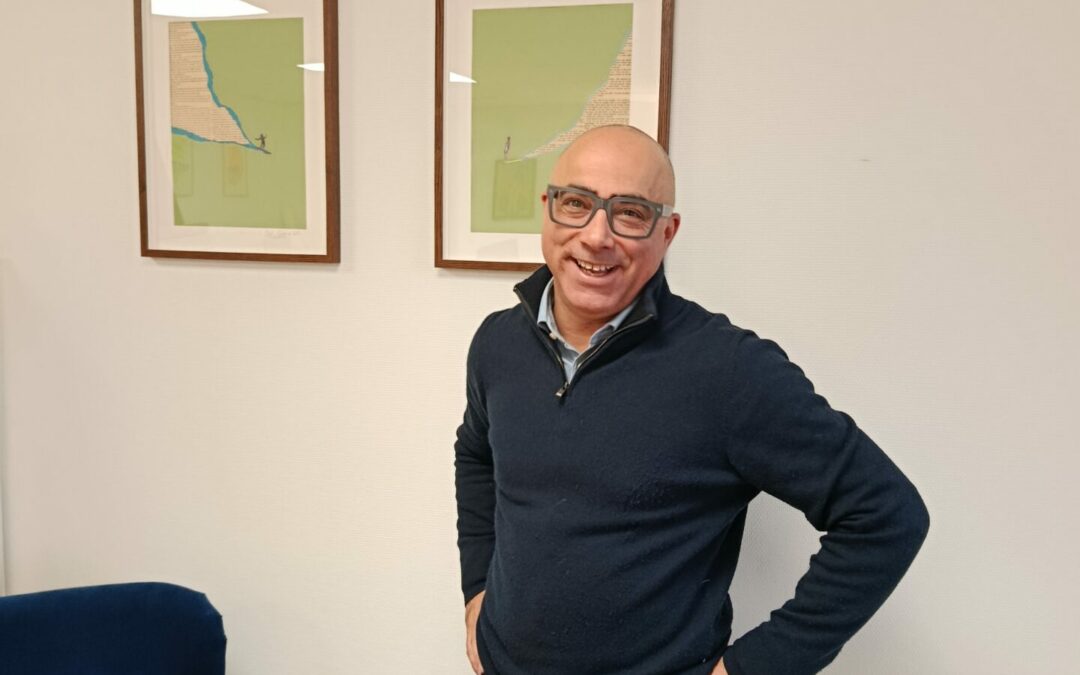 Quand on rentre dans l’agence Qui Plus Est, il n’existe aucune chance de se tromper. Un univers pareil, il n’en existe pas deux. L’identité visuelle de cette agence de communication clermontoise se porte, en particulier, sur des compositions graphiques affichées au mur. Des quartiers de Clermont-Ferrand, des symboles d’événements régionaux comme le festival Coutellia,… Mais encore, les portraits de ceux qui composent l’agence. Soit un homme, soit une femme, accompagné(e) de cercles bleus ainsi que des touches de jaune et de rouge. Nous nous arrêtons sur celui de Marc Chaumeix, le dirigeant de l’agence. Bras en l’air, sourire éclatant, regard vif. Un mélange d’enthousiasme et de dynamisme en une feuille A4. Une telle posture énergétique nous intrigue. Qui est Marc Chaumeix ? Les réponses de manière complète en podcast sous ce lien, ou à travers cet article ci-dessous.